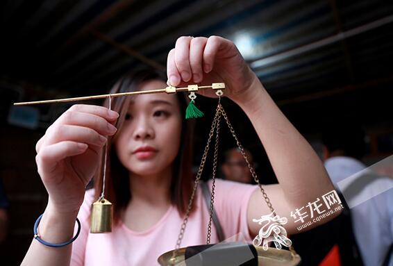 一名網(wǎng)媒行的記者正在體驗(yàn)當(dāng)?shù)貍鹘y(tǒng)的手工制稱。記者 謝鵬 攝