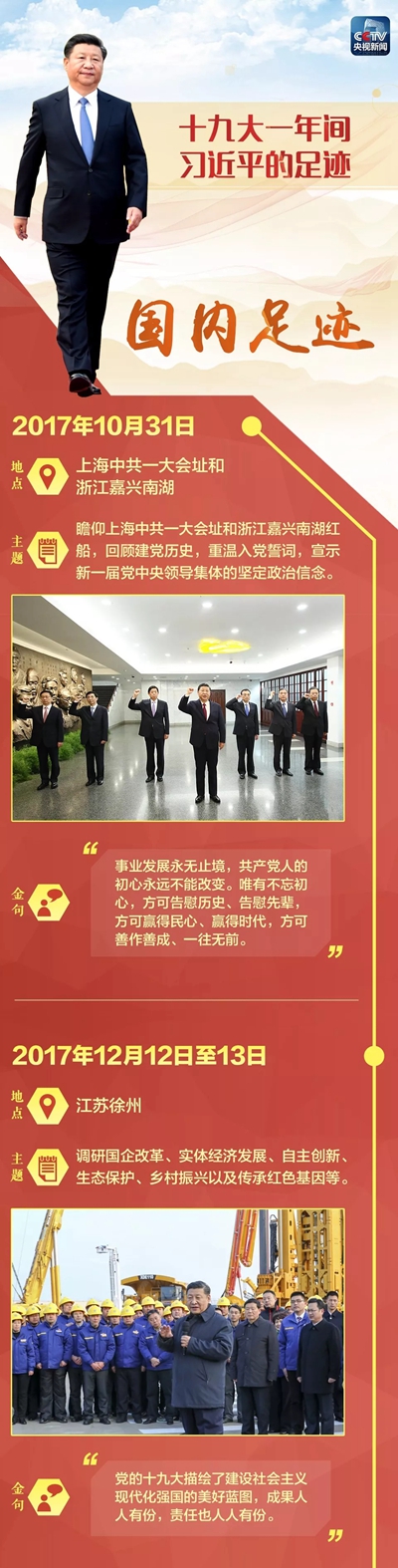 2017年10月18日,黨的十九大在北京召開。如今,一年已經(jīng)過去,而在這一年間,從國內(nèi)考察、參加國際會議再到外事訪問,習(xí)近平總書記的足跡遍布多地。今天,跟隨一張圖,一起回顧習(xí)近平總書記這一年來的足跡。