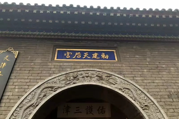 天津得名于“天子津渡”,可見天津的位置一直與水系有關(guān)。天津既有沿海港口,又有內(nèi)陸的海河與京杭大運(yùn)河,水系發(fā)達(dá)。宋元以來,天津是海運(yùn)漕糧的終點(diǎn),也是轉(zhuǎn)入內(nèi)河裝卸漕糧的碼頭。至元朝年間,由于當(dāng)時漕船海難不斷發(fā)生,于是元泰定三年(1326年),皇帝下令在天津海河三岔河口建天后宮(當(dāng)時叫天妃宮),供人們奉祀海神天后,以保佑行船平安,天津媽祖文化逐漸興盛。每有漕運(yùn),船工及護(hù)航的官員們都要在出;蜾罴Z到達(dá)時,向天后祈福求安。慢慢地,周圍百姓也都借由媽祖祈福、求子、保平順,于是,天津成為北方傳承媽祖文化的勝地。以天后宮為中心,隨著漕運(yùn)影響的擴(kuò)展,往來的人們紛紛在天后宮周圍活動、聚集,造就了天津今日古文化街所在地的繁榮。