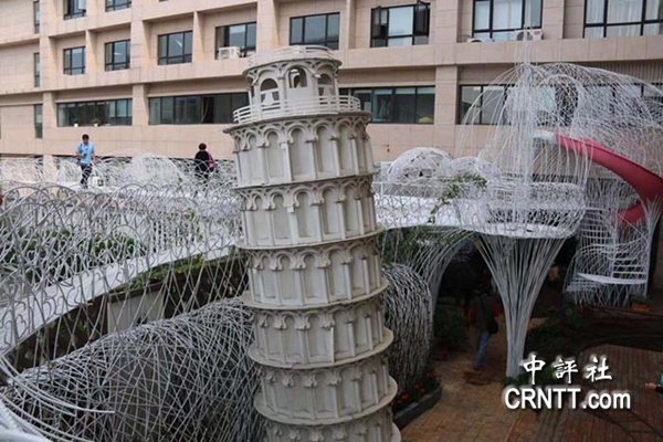 園區(qū)內(nèi)的特色休閑場(chǎng)所—全部由鋼筋搭建設(shè)計(jì)而成。(圖片來源:中評(píng)社)