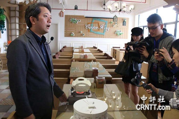麥可將文創(chuàng)園區(qū)的獨(dú)一無二之處是什么??jī)砂睹襟w走進(jìn)園區(qū)內(nèi)一探究竟。首先,來自臺(tái)灣的地方文創(chuàng)“名片”——紙箱王創(chuàng)意市集十分抓人眼球,用紙做成的雕塑、桌椅、餐具、以及各式各樣精致的工藝品、不怕水洗的配飾、甚至還可以做成不怕火燒的紙火鍋,總之,這里的一切都是用紙做成的。