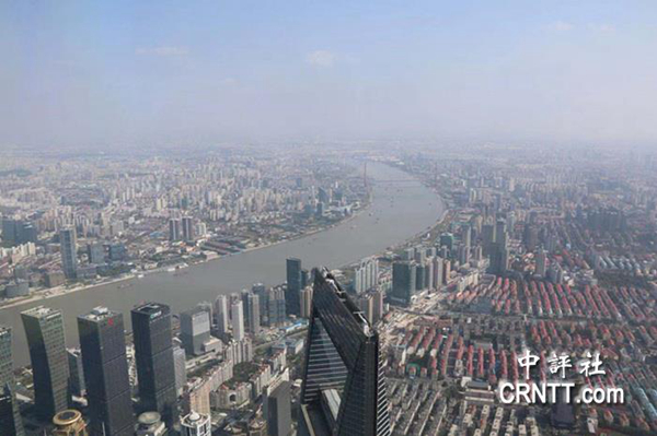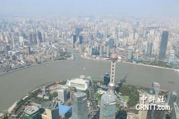 從上海中心俯瞰城市風貌。(圖片來源:中評社)