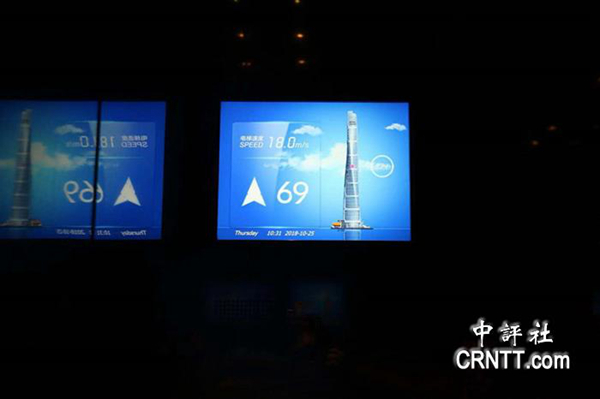 上海中心的超高速電梯可達18m/s。(圖片來源:中評社)