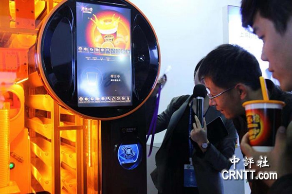 鮮橙汁自助販?zhǔn)蹤C。(圖片來源:中評社)