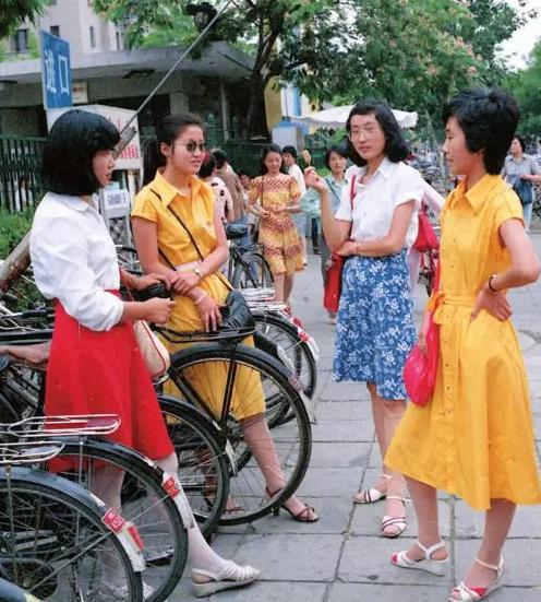 1986年,北京街頭女子爭(zhēng)穿鮮艷的裙子。(圖片來(lái)源:新華社)