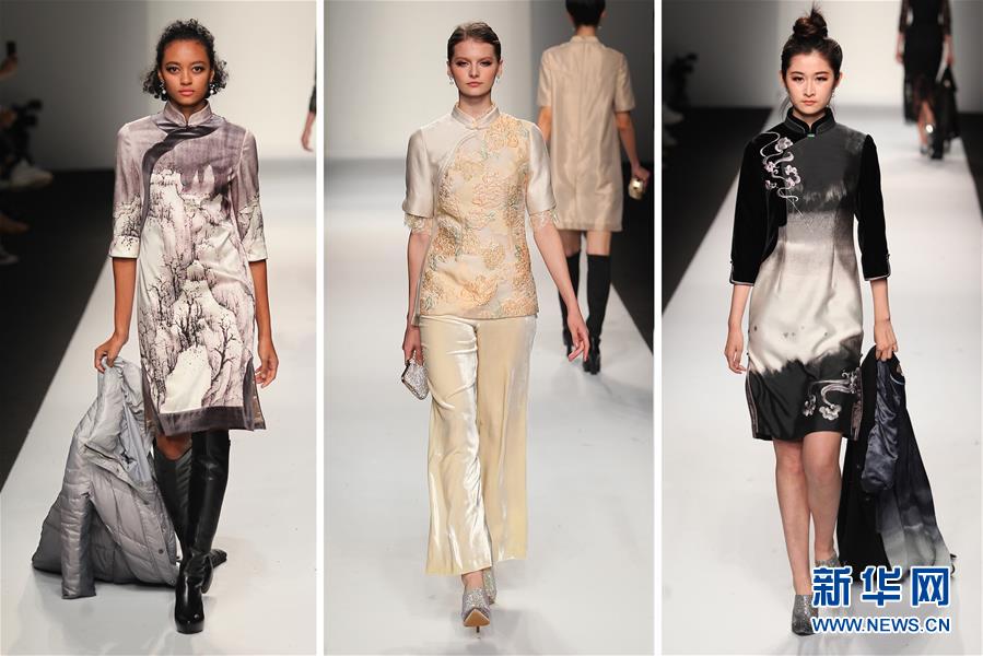 在2018年3月28日至4月3日舉行的2018秋冬上海時(shí)裝周期間,刺繡、盤扣、水墨等中國(guó)傳統(tǒng)服飾元素和文化符號(hào)出現(xiàn)在多個(gè)品牌時(shí)裝發(fā)布會(huì)上,成為本屆時(shí)裝周的亮點(diǎn)。(新華社記者 杜瀟逸 攝)