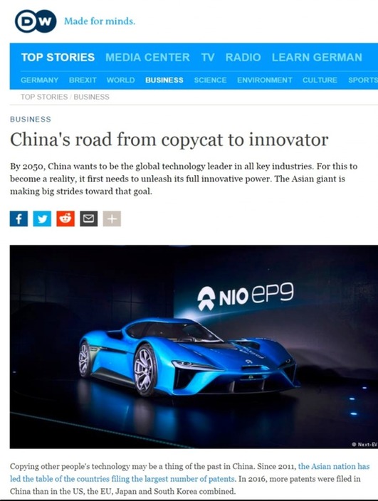 中國(guó)從模仿者到創(chuàng)新者的道路。圖片來(lái)源:德國(guó)之聲網(wǎng)站報(bào)道截圖