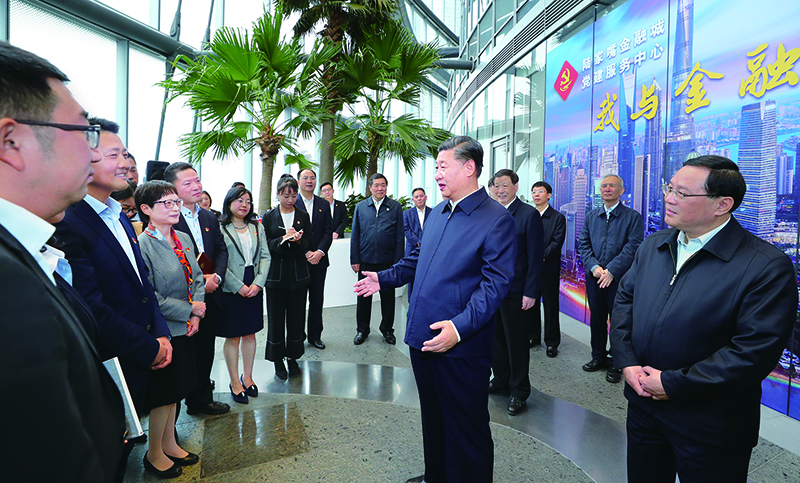 2018年11月6日至7日,中共中央總書記、國家主席、中央軍委主席習(xí)近平在上?疾。這是6日上午,習(xí)近平在上海中心大廈22層的陸家嘴金融城黨建服務(wù)中心,同正在聯(lián)合開展主題黨日活動的企業(yè)黨員親切交談。 新華社記者 謝環(huán)馳/攝