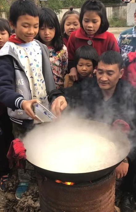 2018年9月3日,開學的第3天,章站亮買來嶄新的大鐵鍋和灶臺,決定在每天下午放學前為孩子們做一頓美味可口的營養(yǎng)餐!安⒉皇呛⒆觽兗依锢щy吃不到這些東西,只是想更多地和他們親近,多一點關愛!闭抡玖琳f,不出所料,營養(yǎng)餐得到孩子們歡迎。沒想到的是,孩子都會來幫忙,洗菜、生火、擺放碗筷、丟垃圾,讓他很感動。