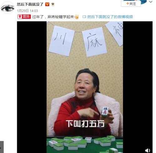 來四川成都走一走,除了聞到臘味兒香,應(yīng)該還能看到很多人家的麻將桌。作為春節(jié)的必備娛樂項目,親朋好友一相聚,不打個通宵怎么行?“寧挨千刀剮,不胡第一把,幺雞二條,不打要遭,八萬九萬,不打輸完,有四不打一,二五先打八……”最近,一位四川奶奶就用Rap向全國網(wǎng)友傳授了一段打麻將秘訣。