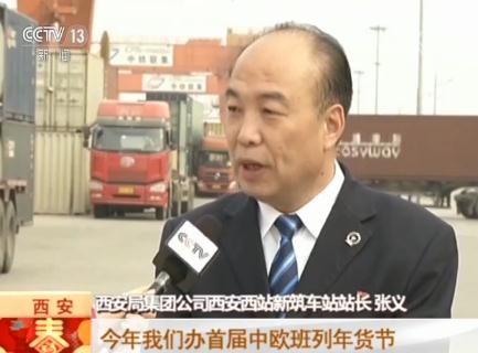 西安局集團公司西安西站新筑車站站長 張義:今年這個年貨節(jié)也是因為品種豐富了,40多個國家的13大種類,大批量的年貨進入國內(nèi)。隨著中歐班列量的劇增,原有的線路有22條,即將投入使用的達到了48條。