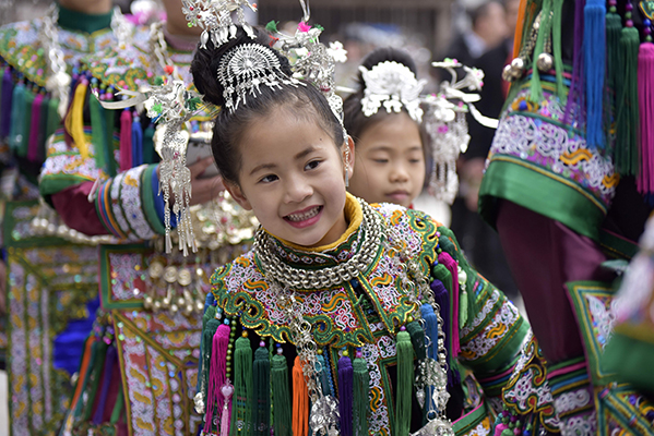 ↑在貴州省榕江縣朗洞鎮(zhèn)高便村,侗族小女孩在進行踩歌堂活動。新華社發(fā)(蔣佐仙 攝)