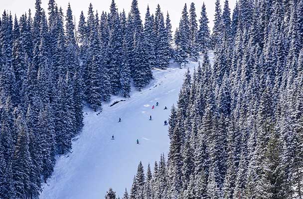↑2月8日,滑雪愛好者們在絲綢之路國際滑雪場一處高級雪道上練習滑雪