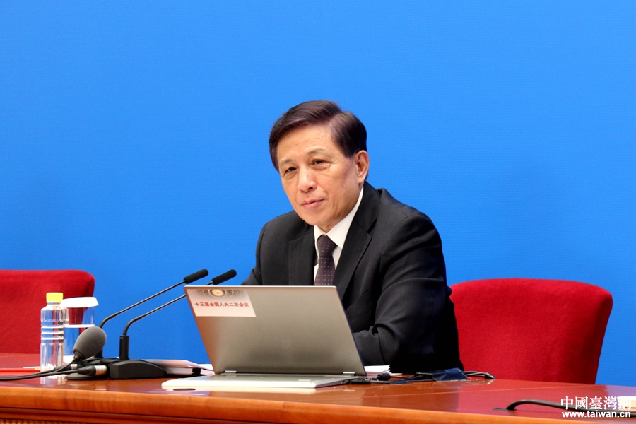 大會發(fā)言人張業(yè)遂就大會議程和人大工作相關的問題回答中外記者提問。(中國臺灣網(wǎng) 尹賽楠 攝)