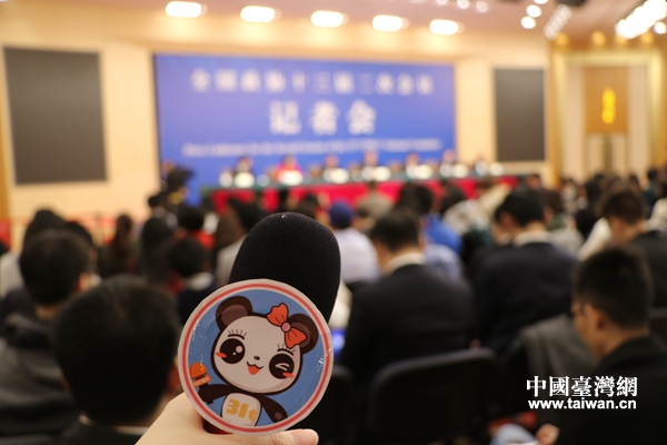 “融融”走進全國兩會新聞中心。(中國臺灣網(wǎng) 雍紫薇 攝)