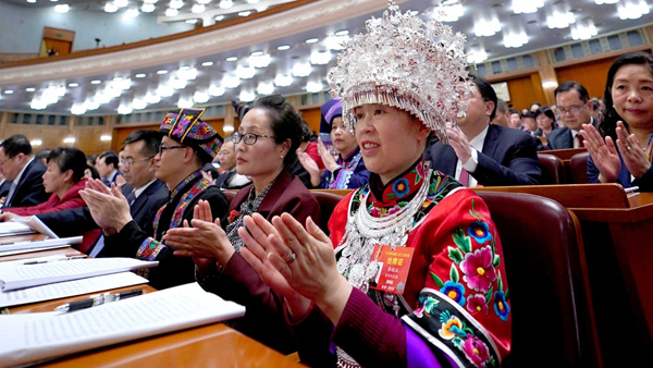 會議由大會主席團常務主席、執(zhí)行主席吉炳軒主持。會議開始時吉炳軒說,今天(8日)是“三八”國際勞動婦女節(jié),讓我們以大會主席團的名義,向各位女代表、女委員、女工作人員,向全國各族各界婦女,向世界各國婦女,致以節(jié)日的祝賀和美好的祝福。