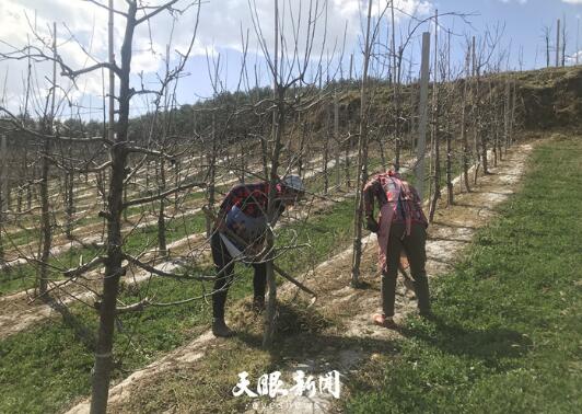 “這活重在細(xì)心,鐵絲松了要重新掛上,不然樹苗容易倒。雜草一根都不能留,我們不能讓小樹白白流失了營養(yǎng)!”走在蘋果林間,文正友不斷囑咐。
