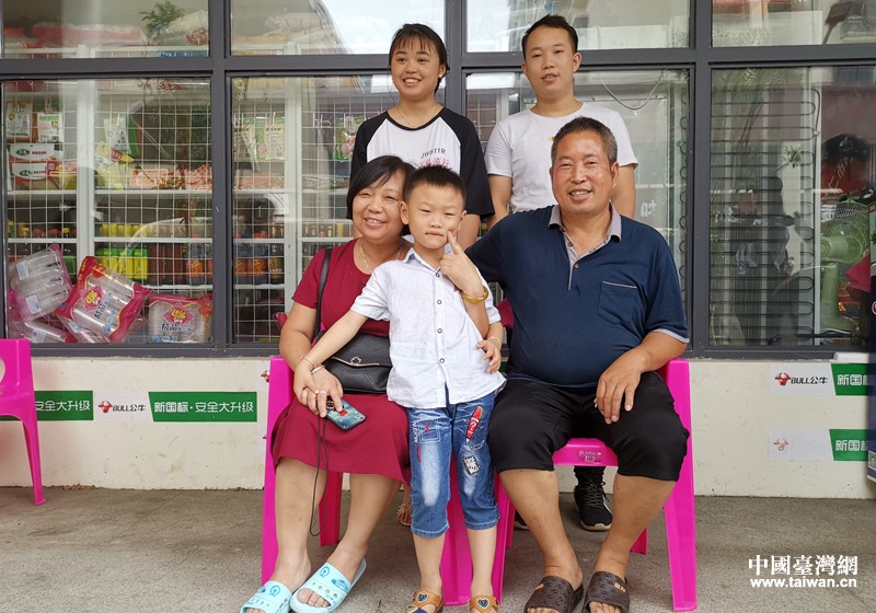 在自家開的超市門前,安景緒一家人合影留念。(中國臺灣網(wǎng) 王莉婷 攝)
