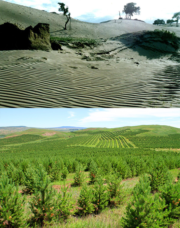 2000年,飽受風(fēng)沙之苦的多倫縣啟動了京津風(fēng)沙源治理工程,大規(guī)模實(shí)施林業(yè)生態(tài)重點(diǎn)工程,一手抓種樹,一手抓禁牧,“ 飛、封、造、禁、移、調(diào)”多措并舉綜合治理沙化土地。