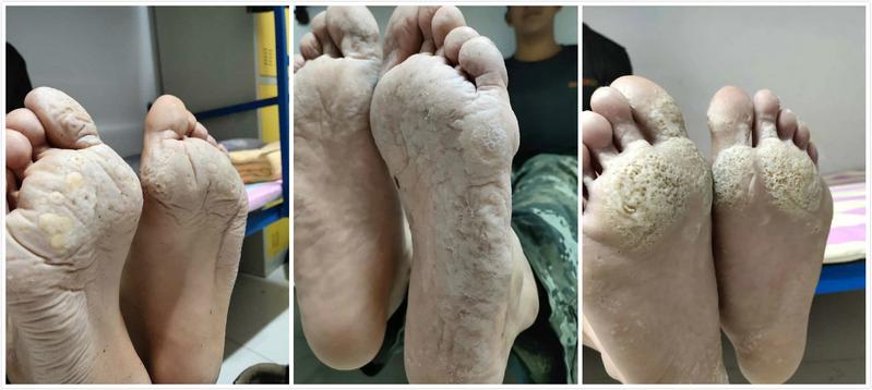 8月13日,朋友圈三張刷屏的照片,讓人著實心疼,這是三雙年輕武警戰(zhàn)士的腳,因長時間的雨水泥濘浸泡,雙腳早已失去肉色。
