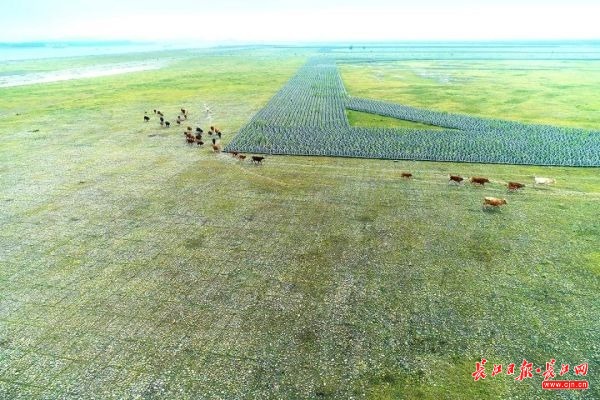 如今灘上草長鶯飛、牛羊成群,儼然是個人造“生態(tài)濕地”。通訊員陳宇提供