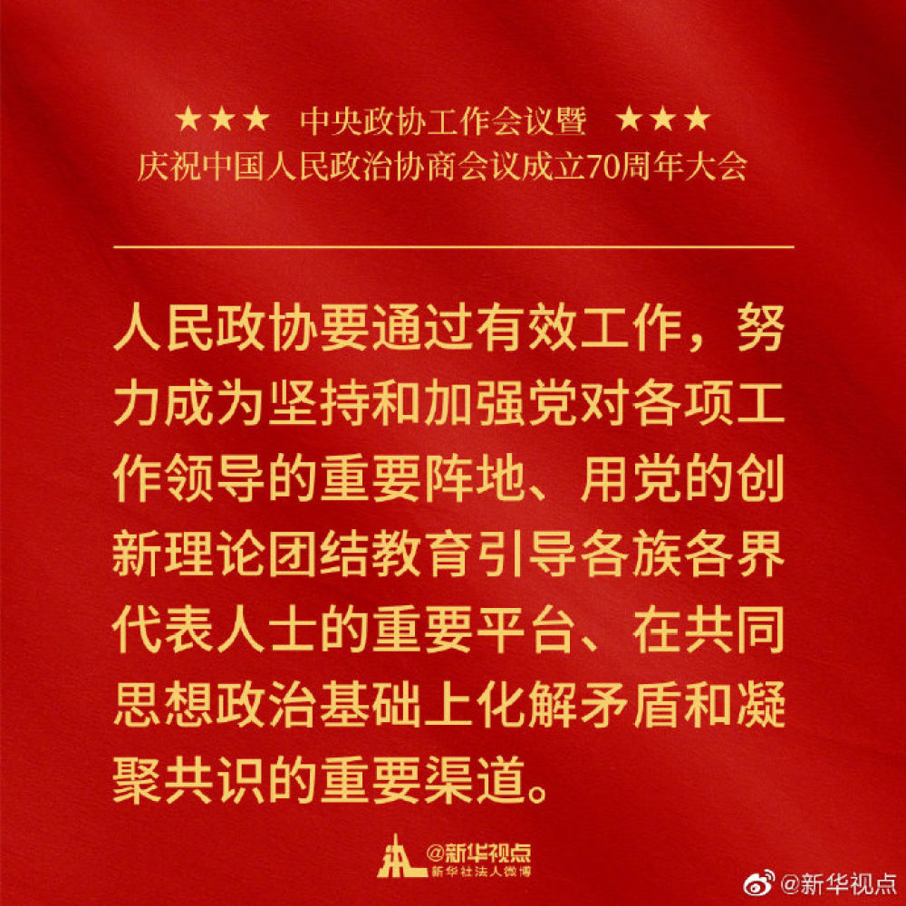 習(xí)近平在中央政協(xié)工作會(huì)議暨慶祝中國(guó)人民政治協(xié)商會(huì)議成立70周年大會(huì)上的講話金句