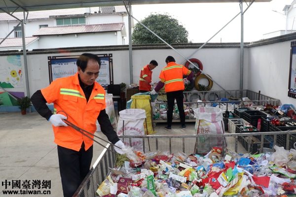 垃圾分揀員正在進(jìn)行工作。(中國(guó)臺(tái)灣網(wǎng) 尹賽楠 攝)