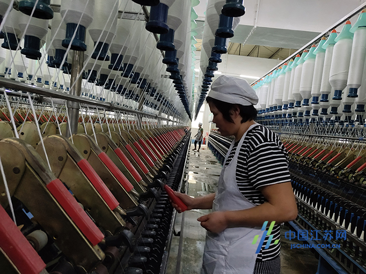 她工作的紡織廠,離家只有幾百米,騎上一輛電動(dòng)車(chē),“抬腿”就到。記者跟著張興蘭走進(jìn)車(chē)間,130多臺(tái)機(jī)器散發(fā)出的熱量,讓室溫超過(guò)30攝氏度。她接滿(mǎn)一壺足有2800毫升的熱水,換上一身短袖衫,就開(kāi)始干起來(lái)。張興蘭站在那里,走走停停,熟練地用電捻清理機(jī)器上飄落的棉絮。一個(gè)班,她面對(duì)著每臺(tái)24米長(zhǎng)的機(jī)器,要清理34臺(tái)。