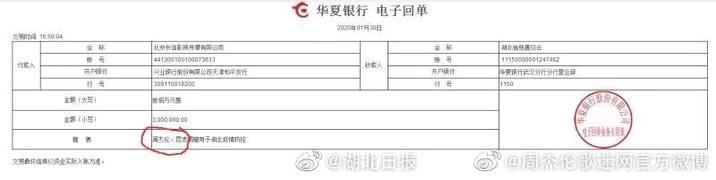 據(jù)湖北日報微博,1月30日,周杰倫攜妻子昆凌通過湖北省慈善總會向防疫一線捐贈300萬元。