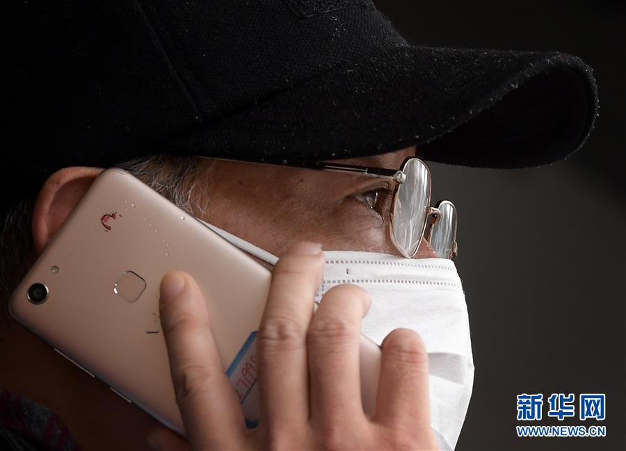 2月10日,武漢市江漢區(qū)德望社區(qū)居委會副主任熊威向街道請求安排車輛和人員轉運一名確診患者。 新華社記者李賀攝