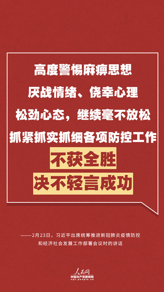 編者按:2月23日,中共中央總書記、國家主席、中央軍委主席習(xí)近平出席統(tǒng)籌推進(jìn)新冠肺炎疫情防控和經(jīng)濟(jì)社會發(fā)展工作部署會議并發(fā)表重要講話。會上,習(xí)近平總書記全面總結(jié)了新冠肺炎疫情防控工作,深刻分析了當(dāng)前疫情形勢和對經(jīng)濟(jì)社會發(fā)展影響,提出了加強(qiáng)黨的領(lǐng)導(dǎo)、統(tǒng)籌推進(jìn)疫情防控和經(jīng)濟(jì)社會發(fā)展工作的重點任務(wù)和重大舉措。