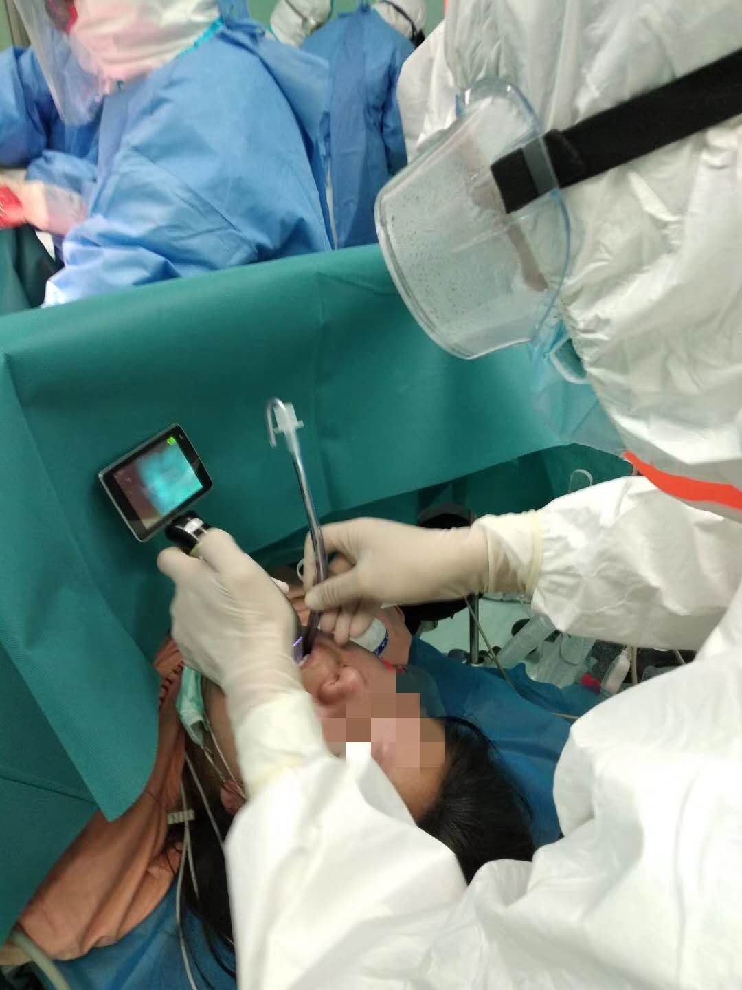 氣管插管是與新冠肺炎患者氣道接觸最為密切的臨床操作之一,插管時(shí)醫(yī)生距離患者的口腔不到20厘米。在插管的那一刻,容易發(fā)生分泌物噴濺,飛沫、氣溶膠擴(kuò)散等情況,患者呼吸道呼出的病毒量也最大,執(zhí)行操作的醫(yī)生被感染的風(fēng)險(xiǎn)極高。杜肖南說:“當(dāng)需要我們進(jìn)行氣管插管時(shí),就說明患者出現(xiàn)了危險(xiǎn),我們必須與死神競速。為了挽救患者的生命,大家都沒有畏懼!