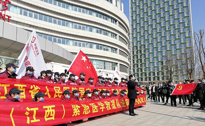 △由41名隊(duì)員組成的國(guó)家緊急醫(yī)學(xué)救援隊(duì)(江西)出征支援武漢