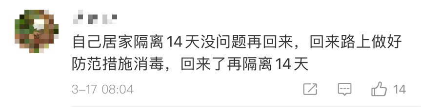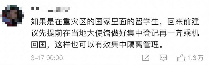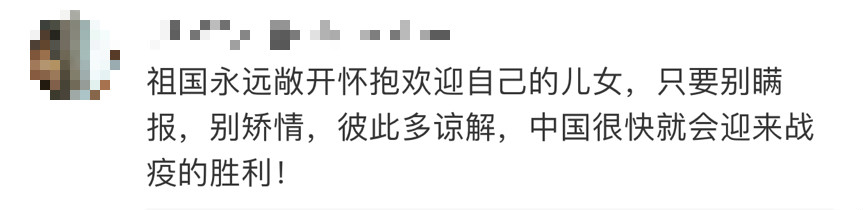 一些網(wǎng)友認為,祖國永遠歡迎自己的兒女回來,但為了防控疫情,歸國人員不應(yīng)瞞報身體狀況,并要配合國內(nèi)集中隔離管理!