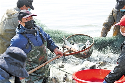 3月17日,參加捕撈的工人告訴記者,要把最肥最好的活魚送上武漢人的餐桌。