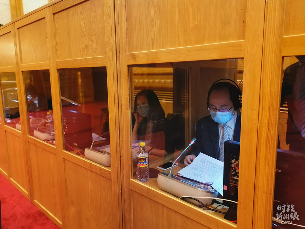 △大會(huì)堂里,同聲傳譯人員在做準(zhǔn)備工作。(總臺(tái)央視記者李曉周拍攝)