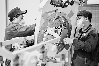 哈電集團(tuán)哈爾濱電氣動(dòng)力裝備有限公司全面復(fù)產(chǎn)復(fù)工,工人在進(jìn)行生產(chǎn)作業(yè)(3月18日攝)。新華社發(fā)