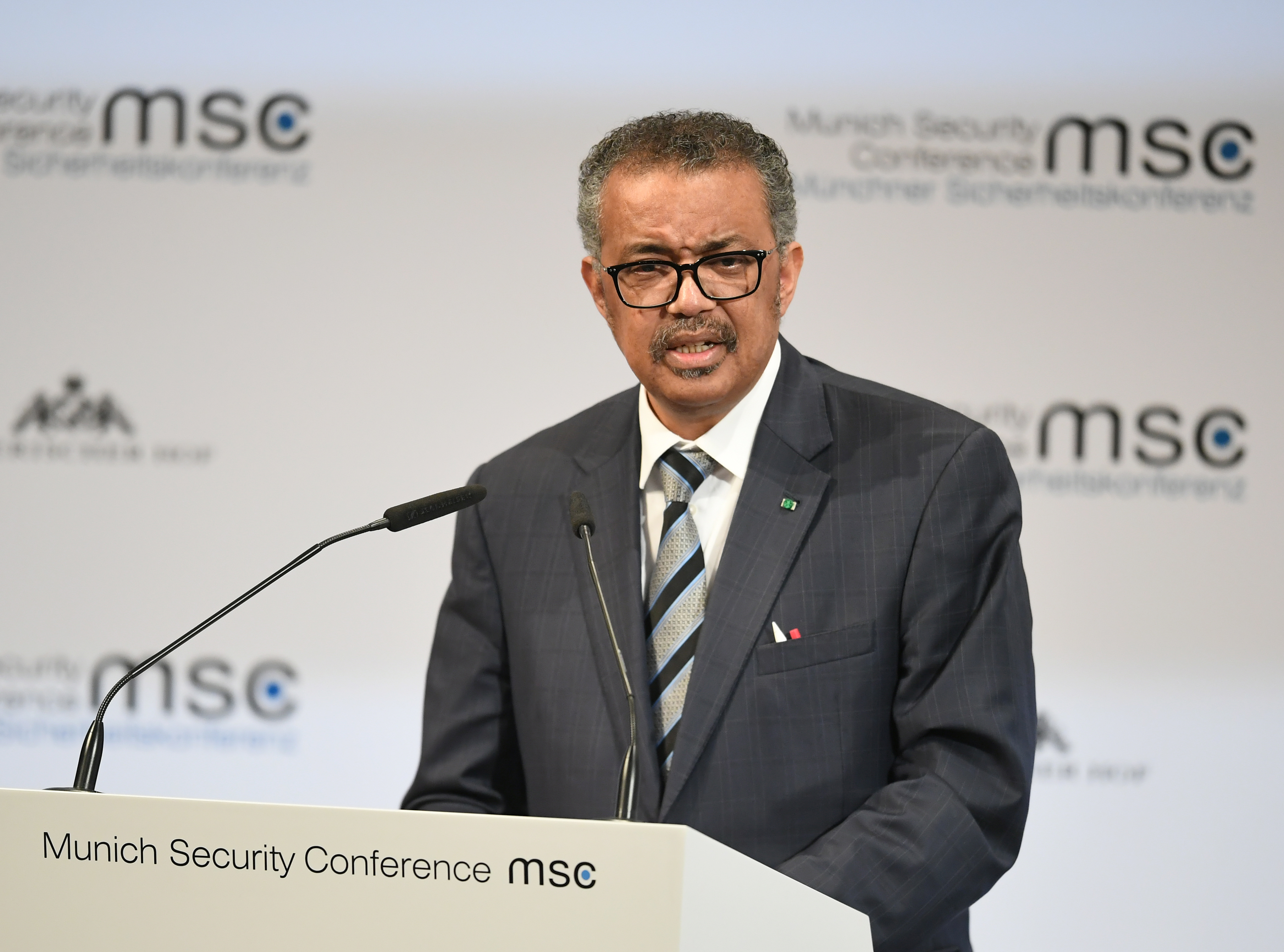 2月15日,在德國慕尼黑,世界衛(wèi)生組織總干事譚德塞在第56屆慕尼黑安全會議上講話。譚德塞表示,中國采取的從源頭上控制新冠肺炎疫情的措施令人鼓舞,盡管這些措施讓中國付出了很大代價,但為世界爭取了時間,減緩了病毒向世界其他地方傳播的速度。新華社記者 逯陽 攝