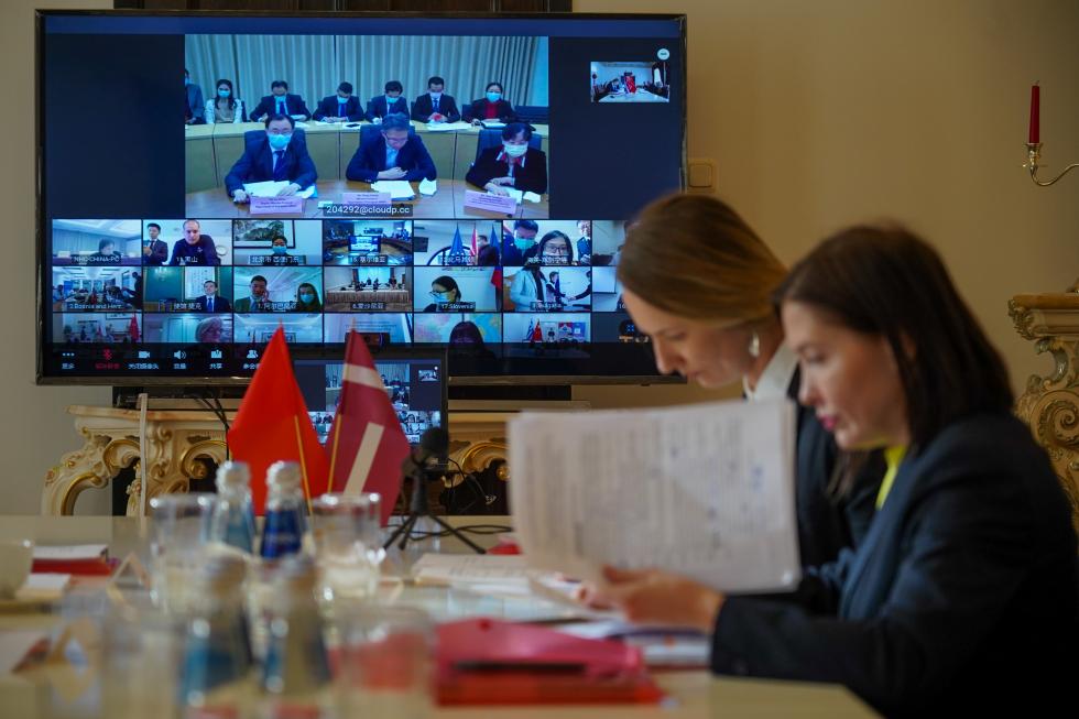 3月13日,在拉脫維亞首都里加,拉脫維亞衛(wèi)生專家在中國駐拉使館參加視頻會議。中國同中東歐17國當(dāng)日舉行新冠肺炎疫情防控專家視頻會議,分享和交流疫情防控經(jīng)驗及信息。這是中國秉承人類命運共同體理念,為全球公共衛(wèi)生安全事業(yè)作貢獻的又一重要舉措。新華社發(fā)(亞尼斯 攝)