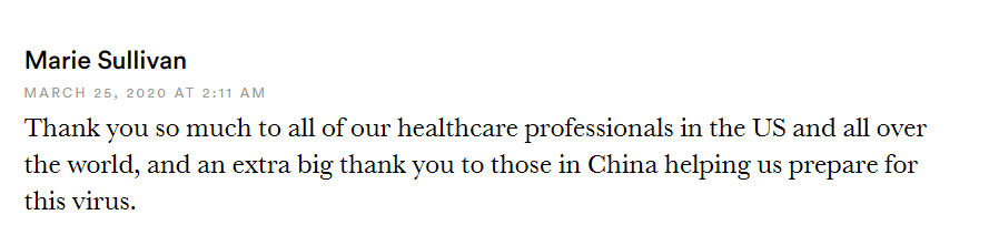 在STAT發(fā)表了這條新聞后,有網(wǎng)友評(píng)論稱,“非常感謝在美國(guó)和世界各地的所有醫(yī)療專業(yè)人員,也非常感謝在中國(guó)為我們提供幫助為應(yīng)對(duì)病毒做好準(zhǔn)備”。病毒無(wú)國(guó)界,中國(guó)醫(yī)生正在用自己的實(shí)際行動(dòng)為國(guó)際社會(huì)抗擊疫情注入寶貴的信心。