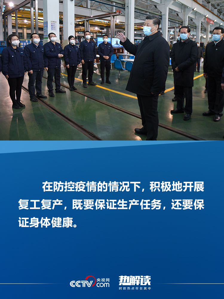 “加強(qiáng)疫情防控這根弦不能松,經(jīng)濟(jì)社會(huì)發(fā)展各項(xiàng)工作要抓緊!边@一統(tǒng)籌兼顧之謀在習(xí)近平的戰(zhàn)“疫”部署中貫穿始終。29日下午,習(xí)近平來(lái)到寧波北侖大碶高端汽配模具園區(qū)再次叮囑大家,“在防控疫情的情況下,積極地開(kāi)展復(fù)工復(fù)產(chǎn),既要保證生產(chǎn)任務(wù),還要保證身體健康。”