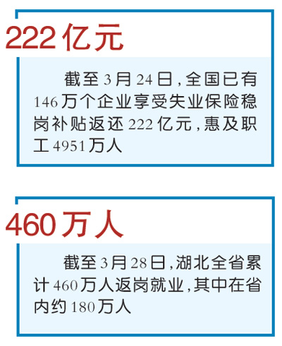 抓住關(guān)鍵點(diǎn),打出政策“組合拳”,對(duì)沖疫情影響。據(jù)人力資源和社會(huì)保障部發(fā)布的信息,截至3月24日,全國(guó)已有146萬(wàn)個(gè)企業(yè)享受失業(yè)保險(xiǎn)穩(wěn)崗補(bǔ)貼返還222億元,惠及職工4951萬(wàn)人。