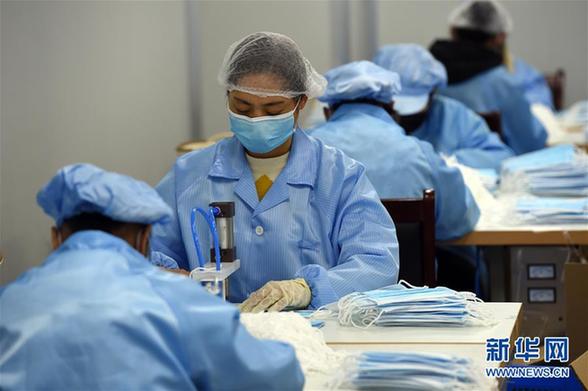 合肥迅達(dá)包裝股份有限公司的工人在口罩生產(chǎn)車間工作(3月17日攝)。新華社發(fā)(周牧 攝)