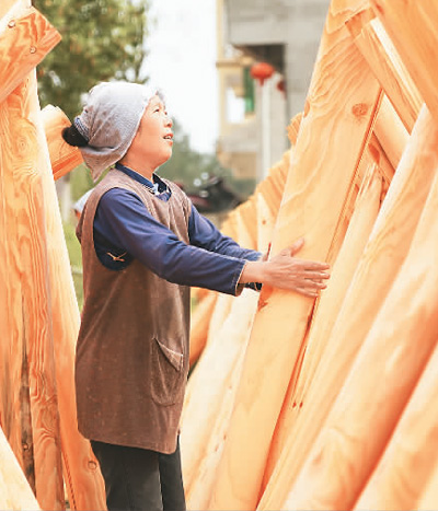 在湖南懷化市通道侗族自治縣播陽鎮(zhèn)上寨村,侗族婦女曬木料薄片,實現(xiàn)“家門口”就業(yè)增收。