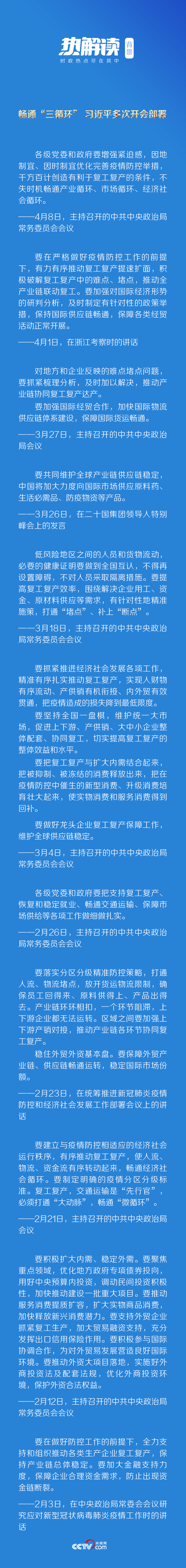 痛則不通,通則不痛。經(jīng)濟(jì)社會是一個動態(tài)循環(huán)系統(tǒng),暢通循環(huán)是經(jīng)濟(jì)社會健康運行的前提保障。如何暢通循環(huán),習(xí)近平戰(zhàn)“疫”全程始終關(guān)注。央視網(wǎng)《熱解讀》為您解析。