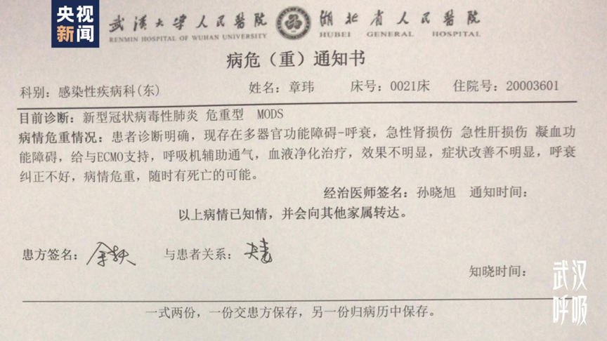 2月9日,章瑋的妻子余軼還是收到了病危通知書,醫(yī)生們一度認為章瑋很難有生的希望了。