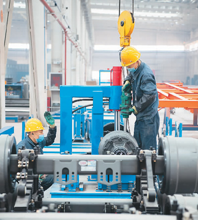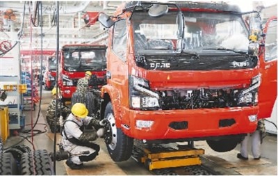 5月3日,位于湖北省襄陽市的東風(fēng)汽車股份有限公司工程車事業(yè)部二總裝車間里一派熱火朝天的景象,為趕生產(chǎn)任務(wù),工程車事業(yè)部每天排產(chǎn)近100臺(tái),達(dá)同期產(chǎn)能水平150%。圖為裝配工人正在緊張地忙碌。王 虎攝(人民視覺)