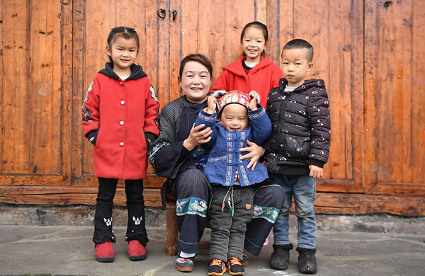 這是4月24日拍攝的吳美金(左二)和她孫子孫女的合影。1967年出生的吳美金,1992年嫁入飛蟲村(現(xiàn)十八洞村飛蟲寨)時(shí),只有爛泥路的飛蟲村不僅田土少,掙錢活路也少,生活十分困難。2014年,吳美金加入了十八洞村苗繡特產(chǎn)農(nóng)民專業(yè)合作社,從小就會(huì)的苗繡傳統(tǒng)手藝如今成了家庭增收的法寶,不僅在家門口就把錢掙了,同時(shí)還能照顧年幼的孫子孫女!艾F(xiàn)在的日子,比年輕的時(shí)候好多了。”吳美金說。新華社記者 薛宇舸 攝