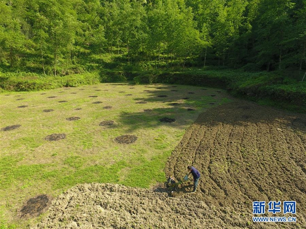 施六金在田間翻耕,為種水稻、養(yǎng)稻花魚作準(zhǔn)備(4月24日無人機(jī)拍攝)。1973年出生于十八洞村的施六金,由于父親患病很早就放棄學(xué)業(yè)和母親扛起了家庭的重?fù)?dān)。為了生活,他還曾遠(yuǎn)去東南亞打工。2015年,看到家鄉(xiāng)的變化,施六金回到村里開起了農(nóng)家樂,年度家庭人均純收入也從2014年的1715元增長(zhǎng)到了2019年的35696元。2018年,施六金與心愛的人組建了家庭。今年初,施六金與愛人迎來了一個(gè)大胖小子!白鋈俗鍪乱没貓(bào)和感恩。”施六金給剛出生的兒子取名施澤恩。新華社記者 薛宇舸 攝