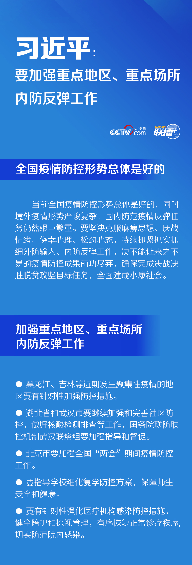 聯(lián)播+ | 習(xí)近平:要加強(qiáng)重點(diǎn)地區(qū)、重點(diǎn)場(chǎng)所內(nèi)防反彈工作